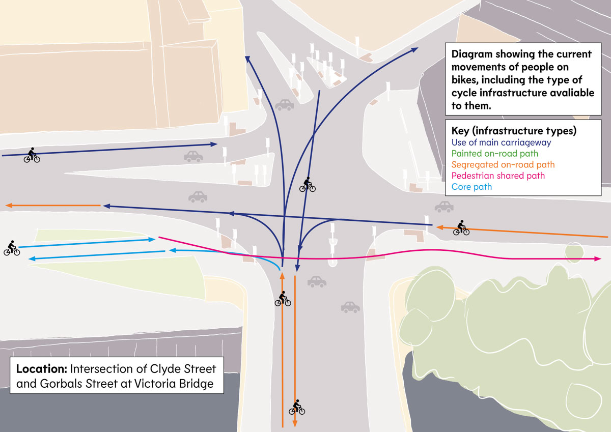 Subject: Community engagement by the practice where Emma Burke Newman worked. She was killed by an HGV driver while cycling at the George V bridge/Broomielaw junction, near the casino, in February 2023. This consultation is about that junction and two others – Gorbals St at the Clutha Vaults pub and Albert Bridge/Clyde St (by the High Court). NA say: “These junctions are our focus of study as they feel like incidents-waiting-to-happen, and one is the site of Emma’s death.” Diagrams show movements around each junction (and include the council’s plans for the South City Way extension at the Clutha). New Practice carried out previous consultations like George Square and have applied their knowledge to make a user friendly page. “We want to hear your experiences when walking, wheeling, scooting, or as a driver to help inform solutions specific to these locations and create systems for a safer city for us all.”